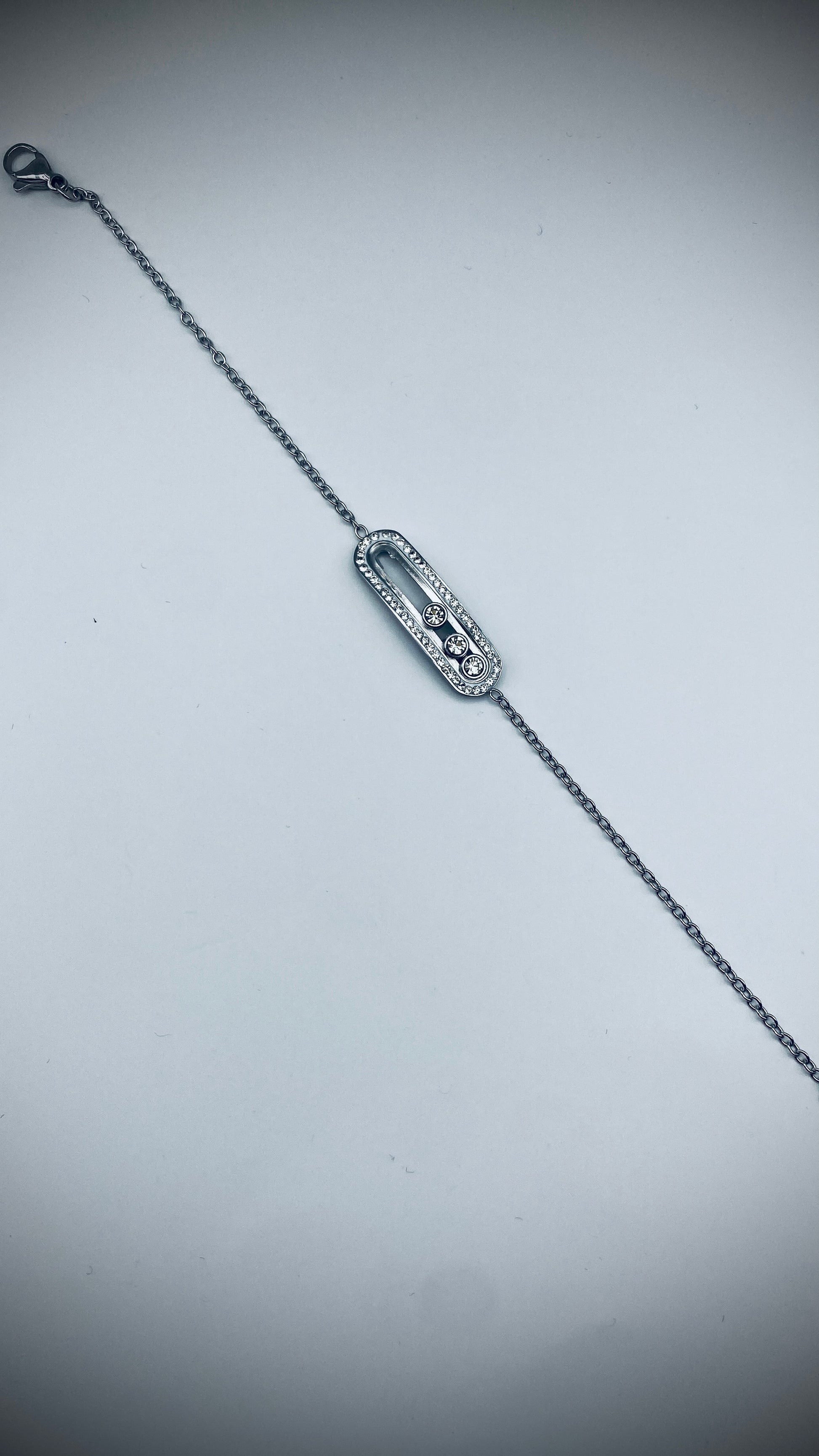 Βραχιόλι αλυσίδα με μπάρα από στρας ασημένιο από ατσάλι