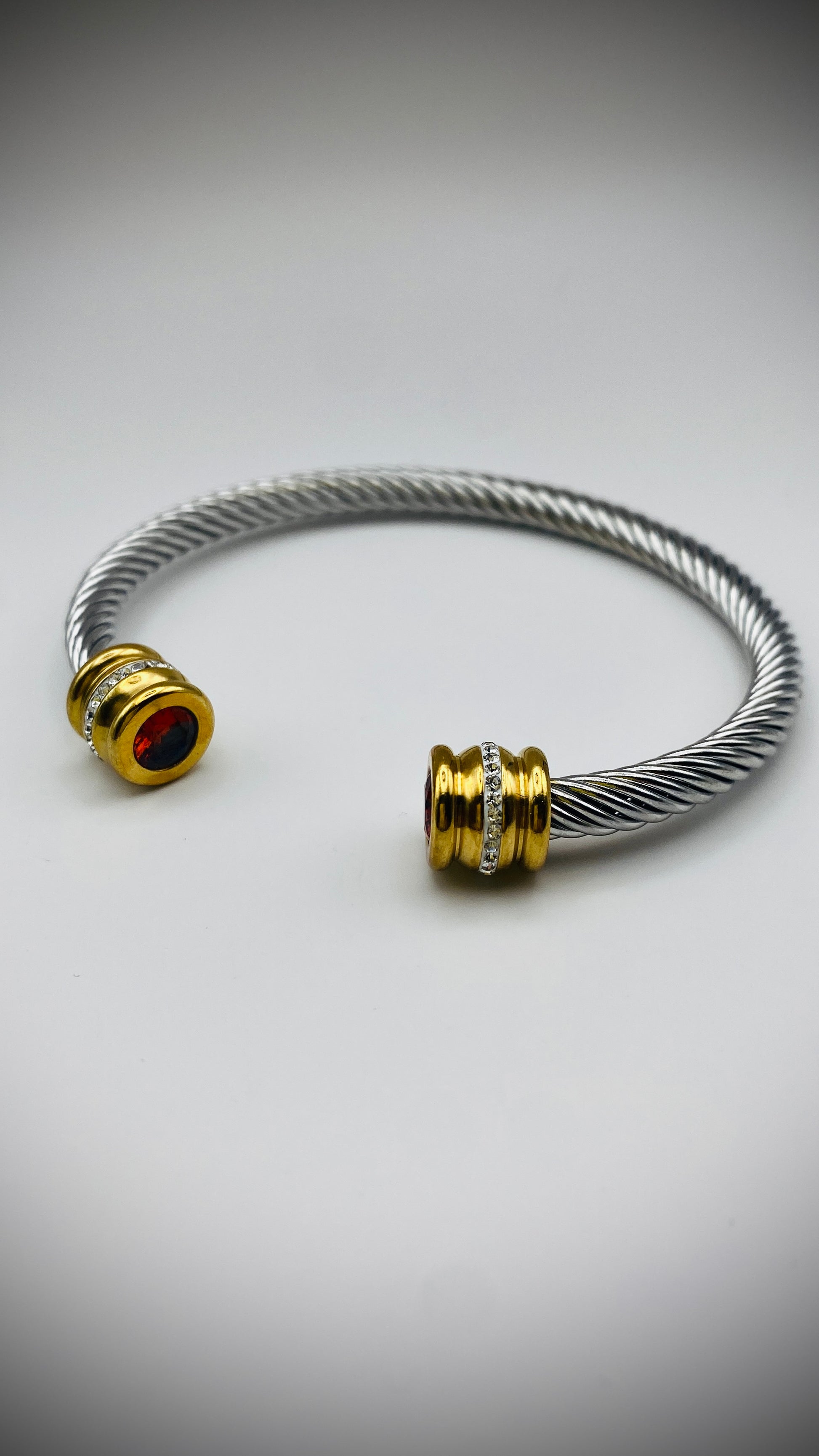 Βραχιόλι- χειροπέδα ασημί χρυσό με κόκκινο στρας από ατσάλι