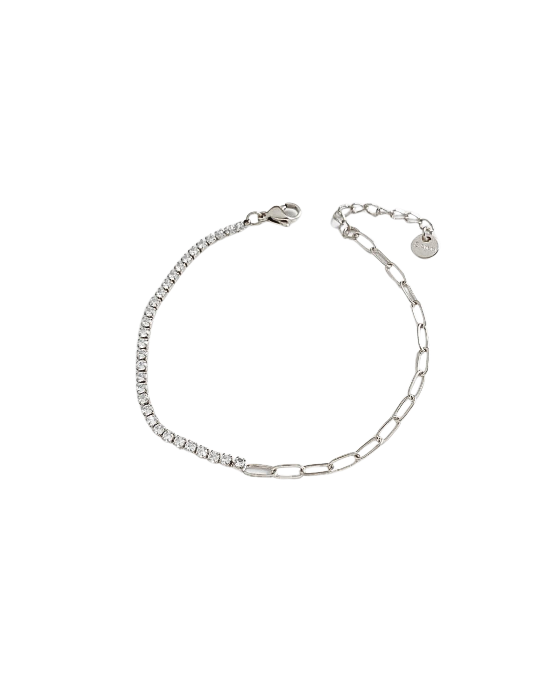 Βραχιόλι μισό αλυσίδα μισό με στρας ασημένιο από ατσάλι