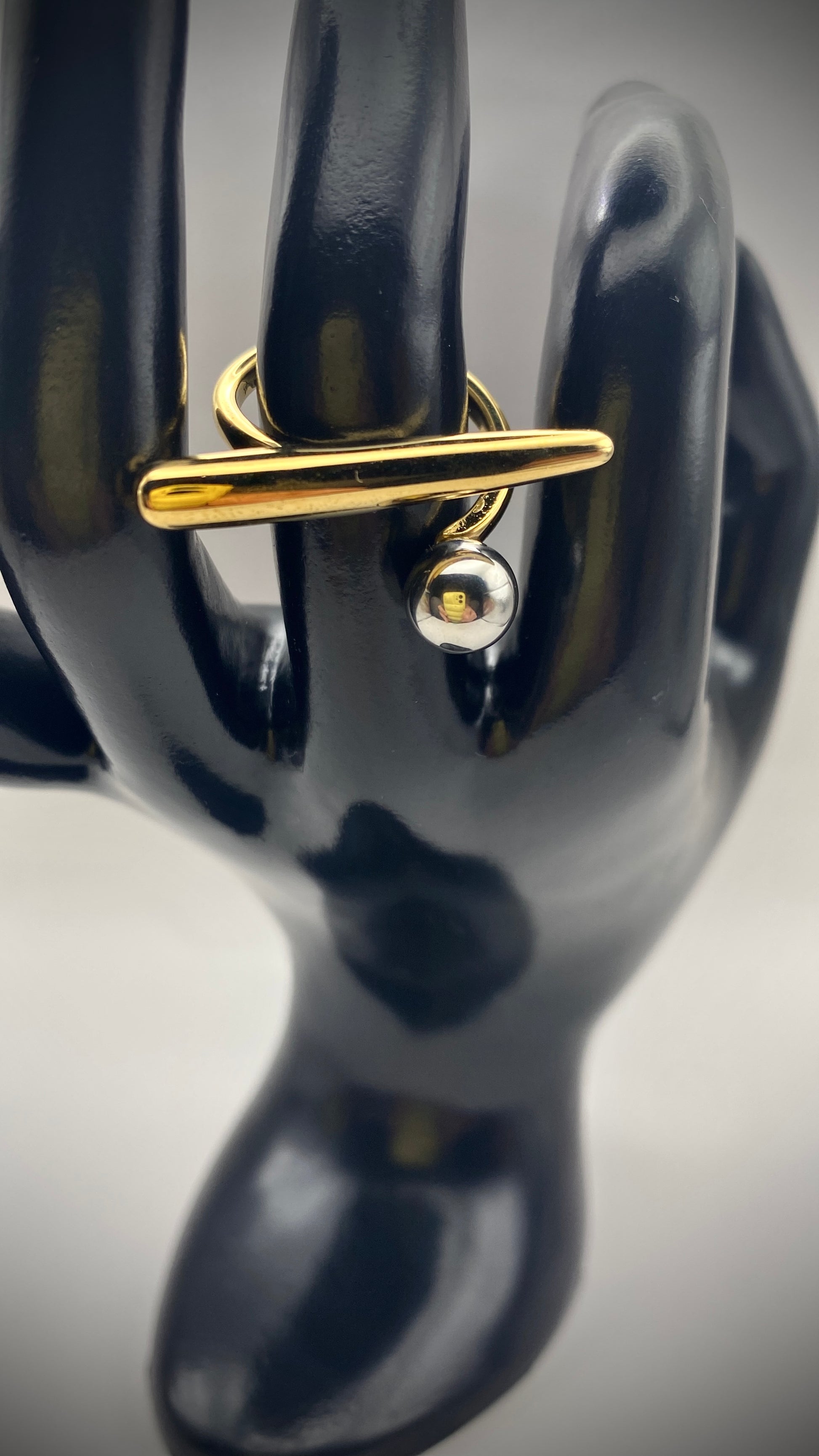 Δαχτυλίδι με μπάλα χρυσή και ασημένια μπάρα (προσαρμόσιμο μέγεθος)