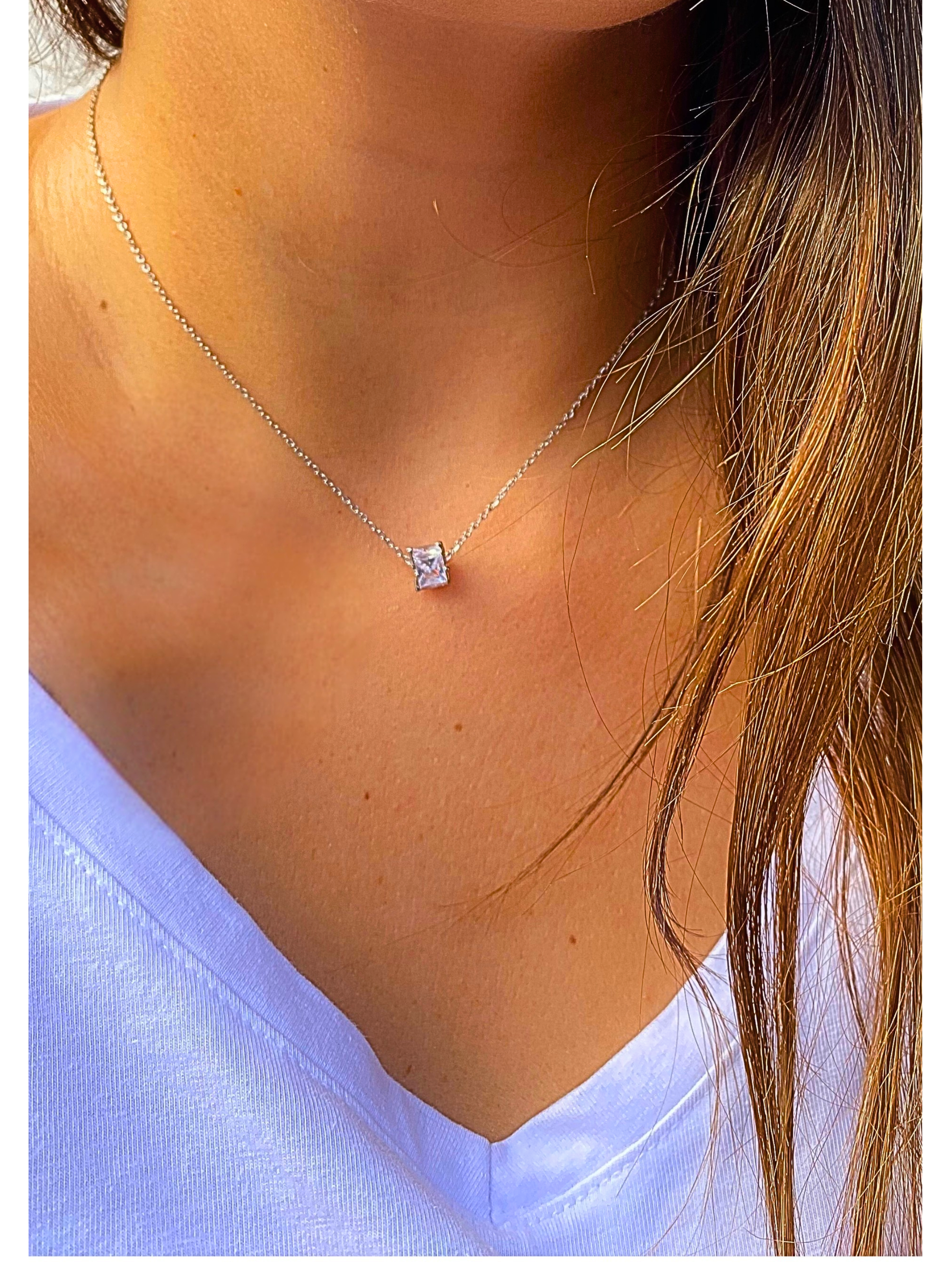Κολιέ με πέτρα στρας που γυρνάει ασημένιο