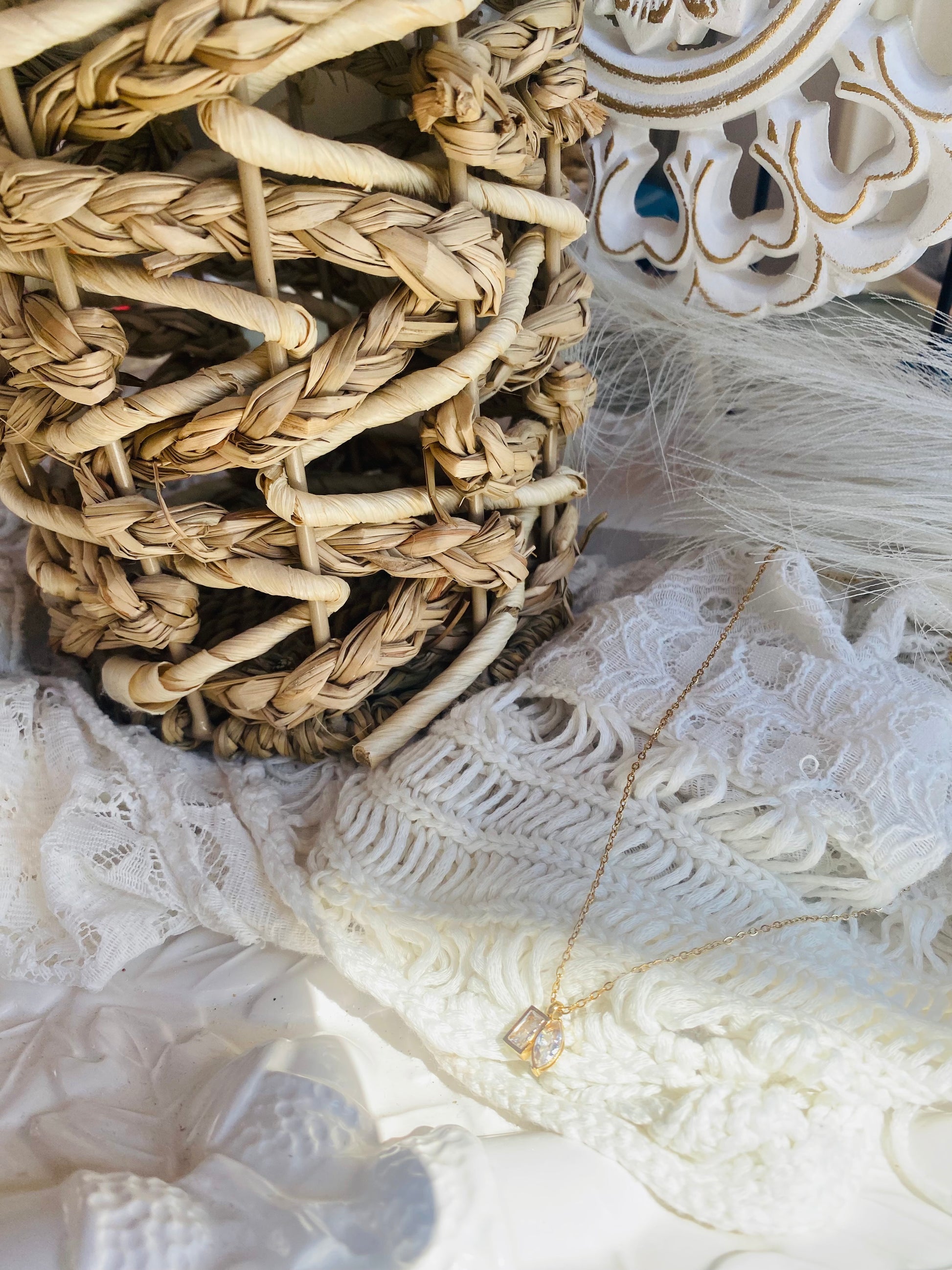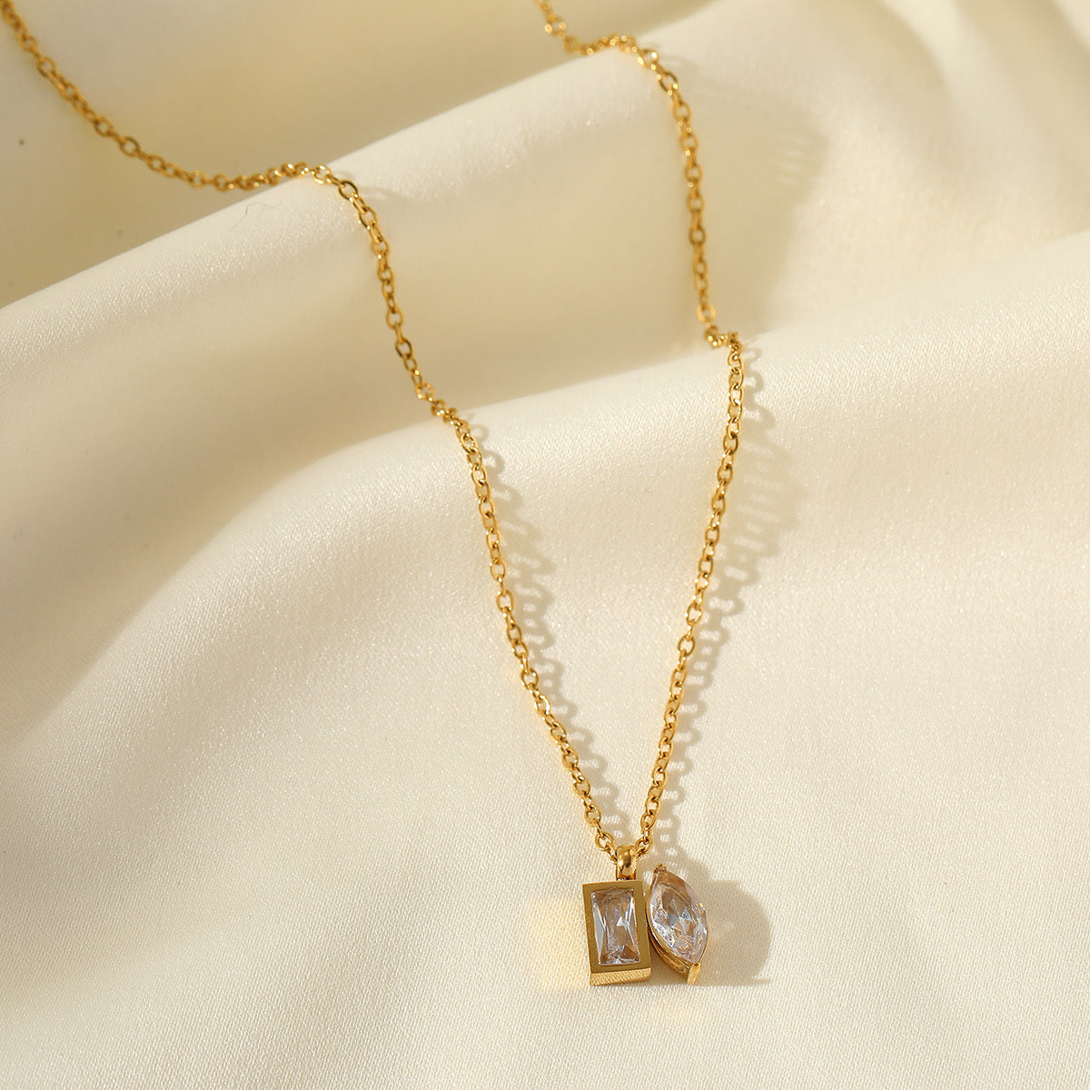 Κολιέ χρυσό από ατσάλι με αλυσίδα και μενταγιόν με πέτρα