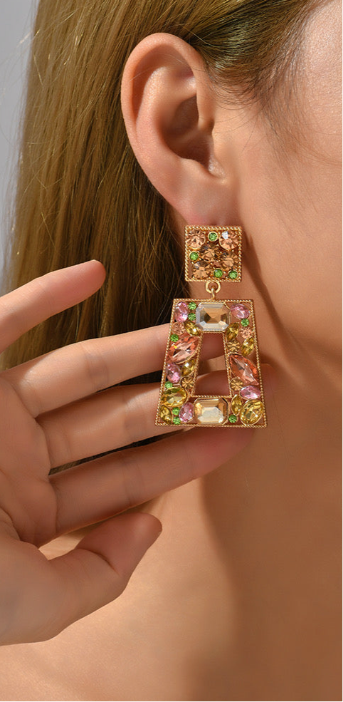 Σκουλαρίκια κρεμαστά με πέτρες από κράμα μετάλλων