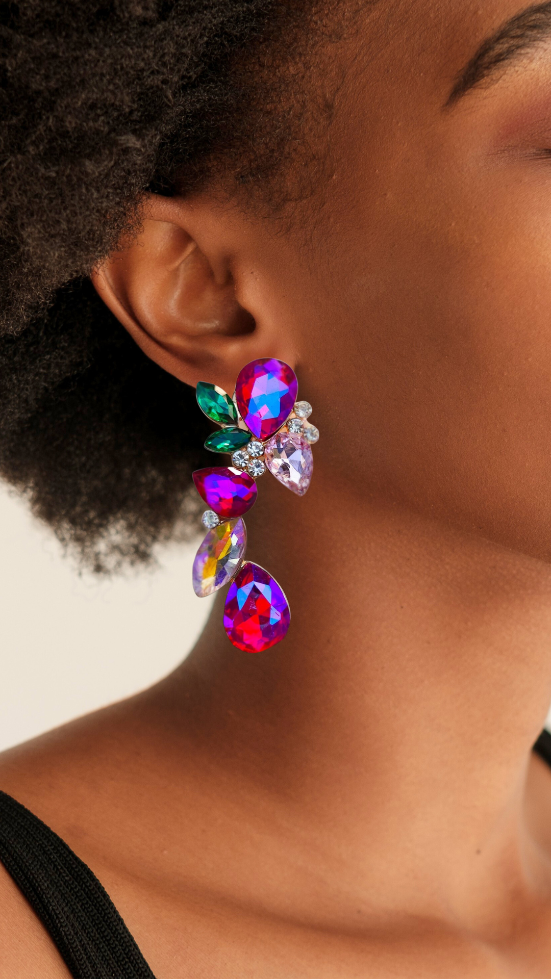 Σκουλαρίκια κρεμαστά με πέτρες σε αποχρώσεις του φούξια