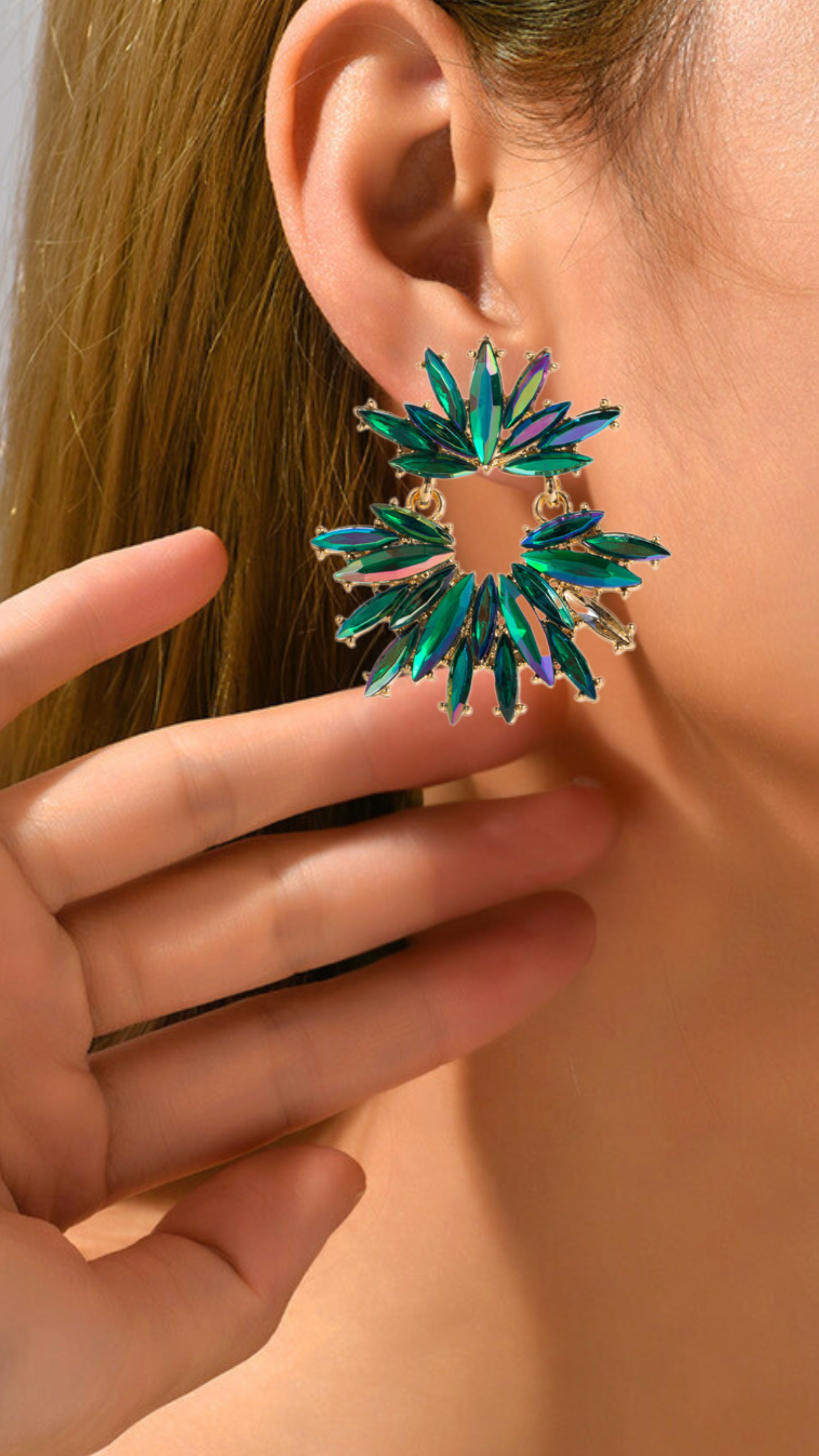 Σκουλαρίκια κρεμάστρα με πράσινες πέτρες από κράμα μετάλλων