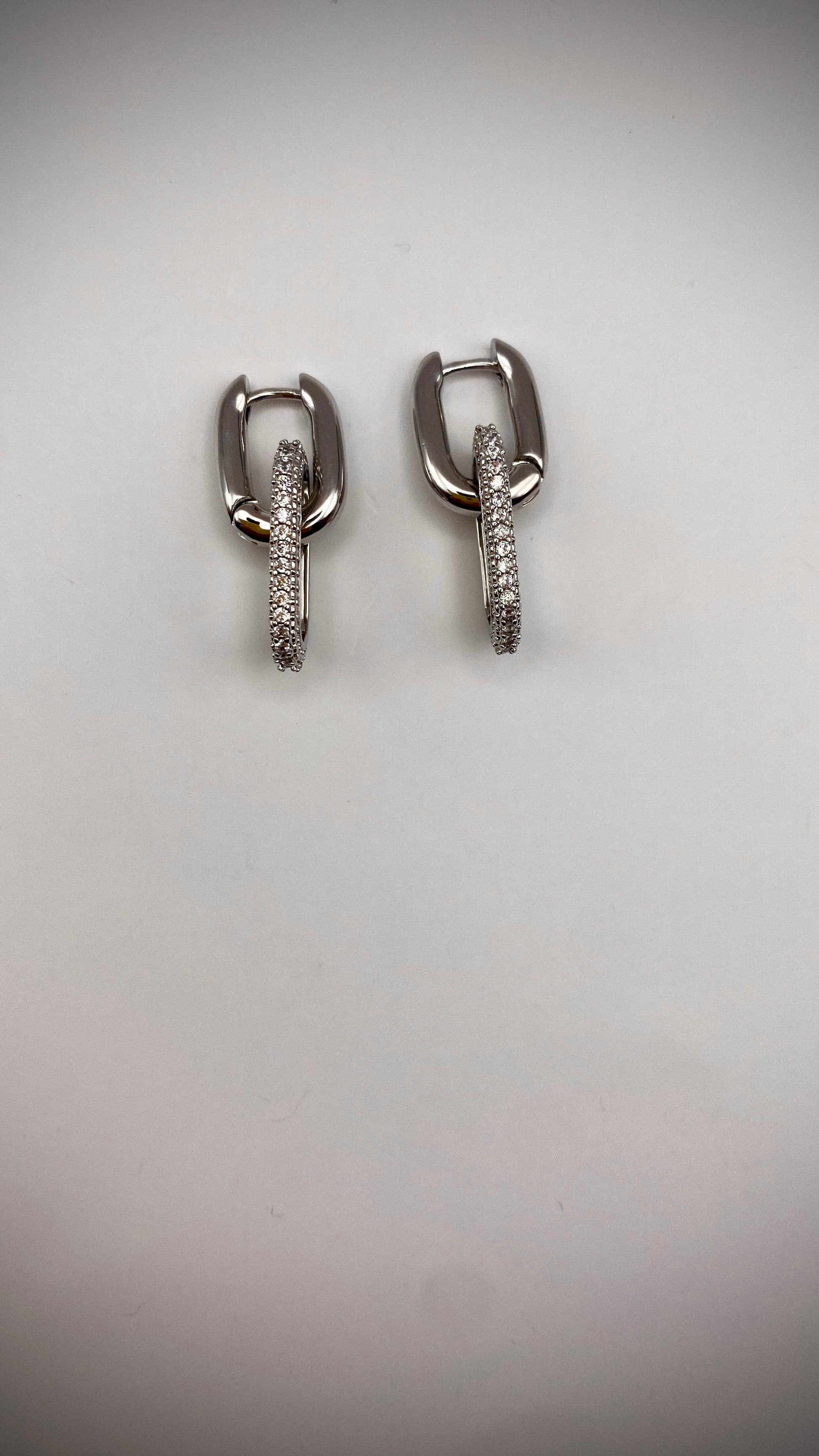 Σκουλαρίκια ασημένια κρεμαστά με στρας τετραγωνισμένοι κρίκοι από ατσάλι