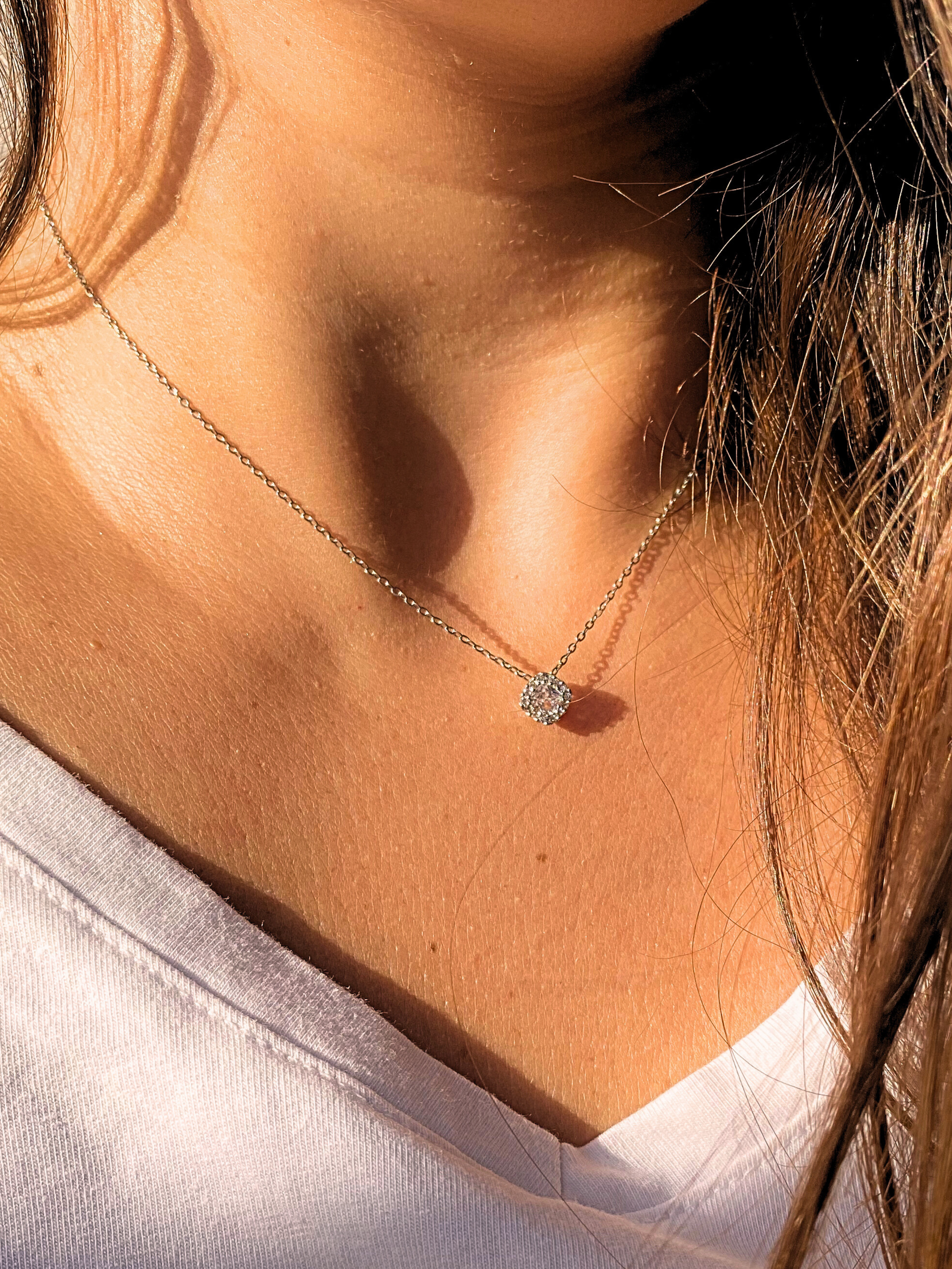 Κολιε με τετράγωνο στρας σε ασημί Από ατσάλι