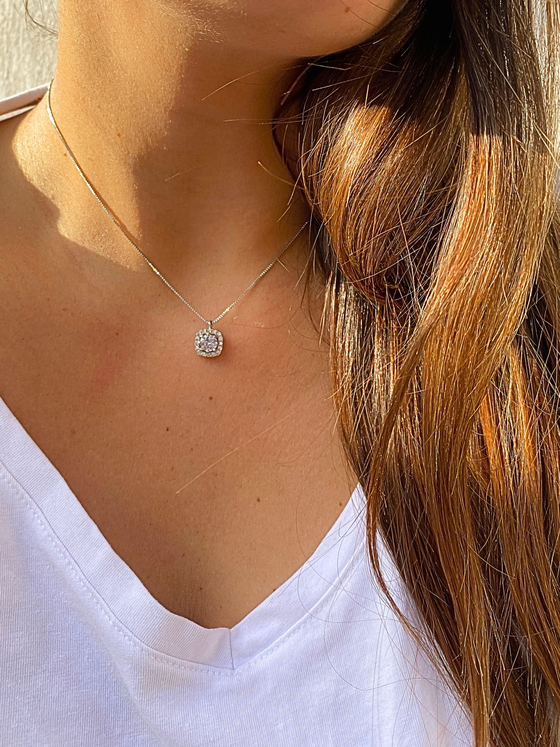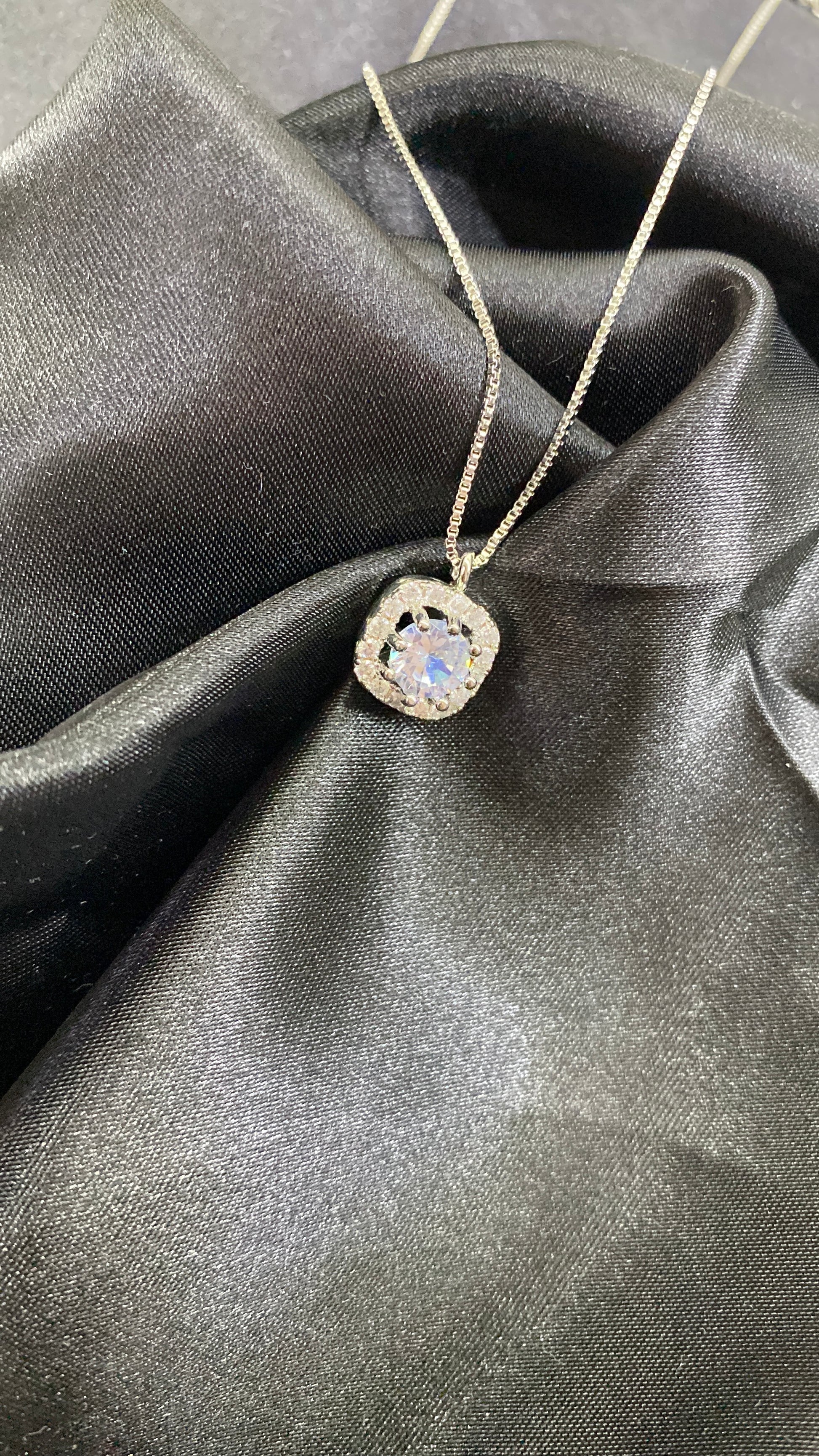 Κολιέ τετράγωνο περιμετρικά στρας και πέτρα στο κέντρο ασημί από ατσάλι