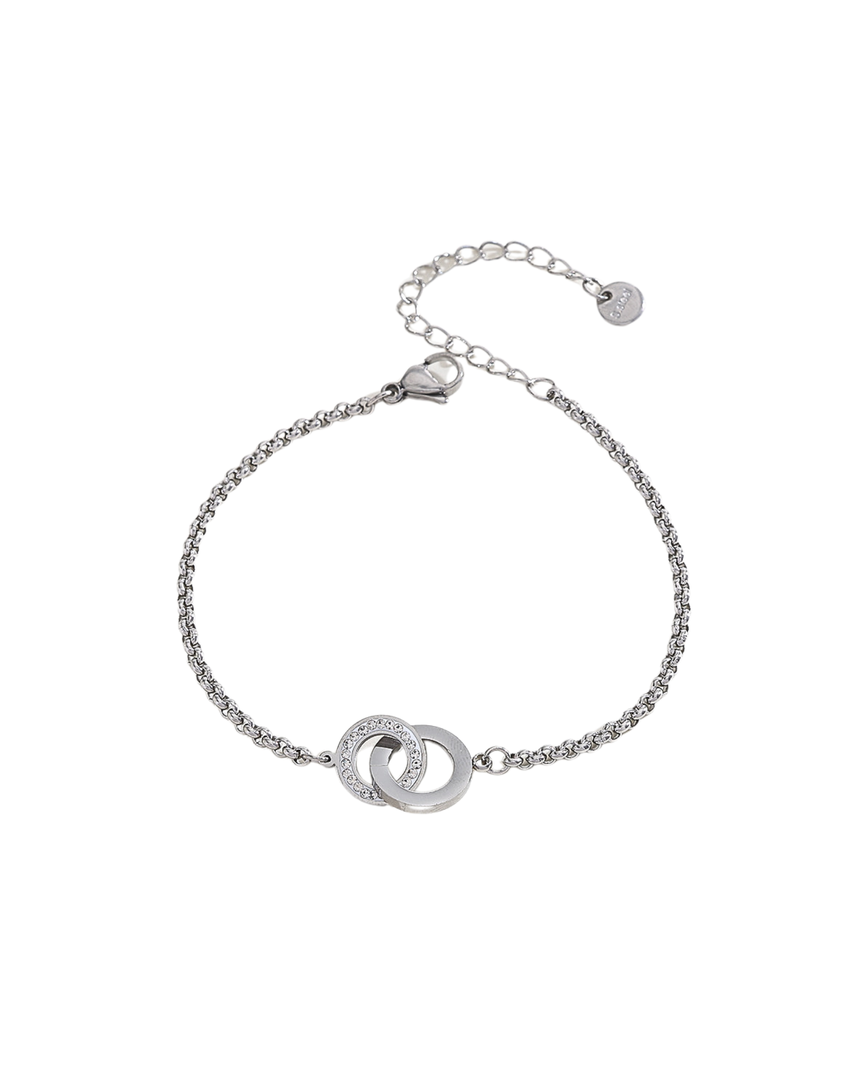 Βραχιόλι με αλυσίδα και διπλό κρίκο με στρας Ασημένιο από ατσάλι
